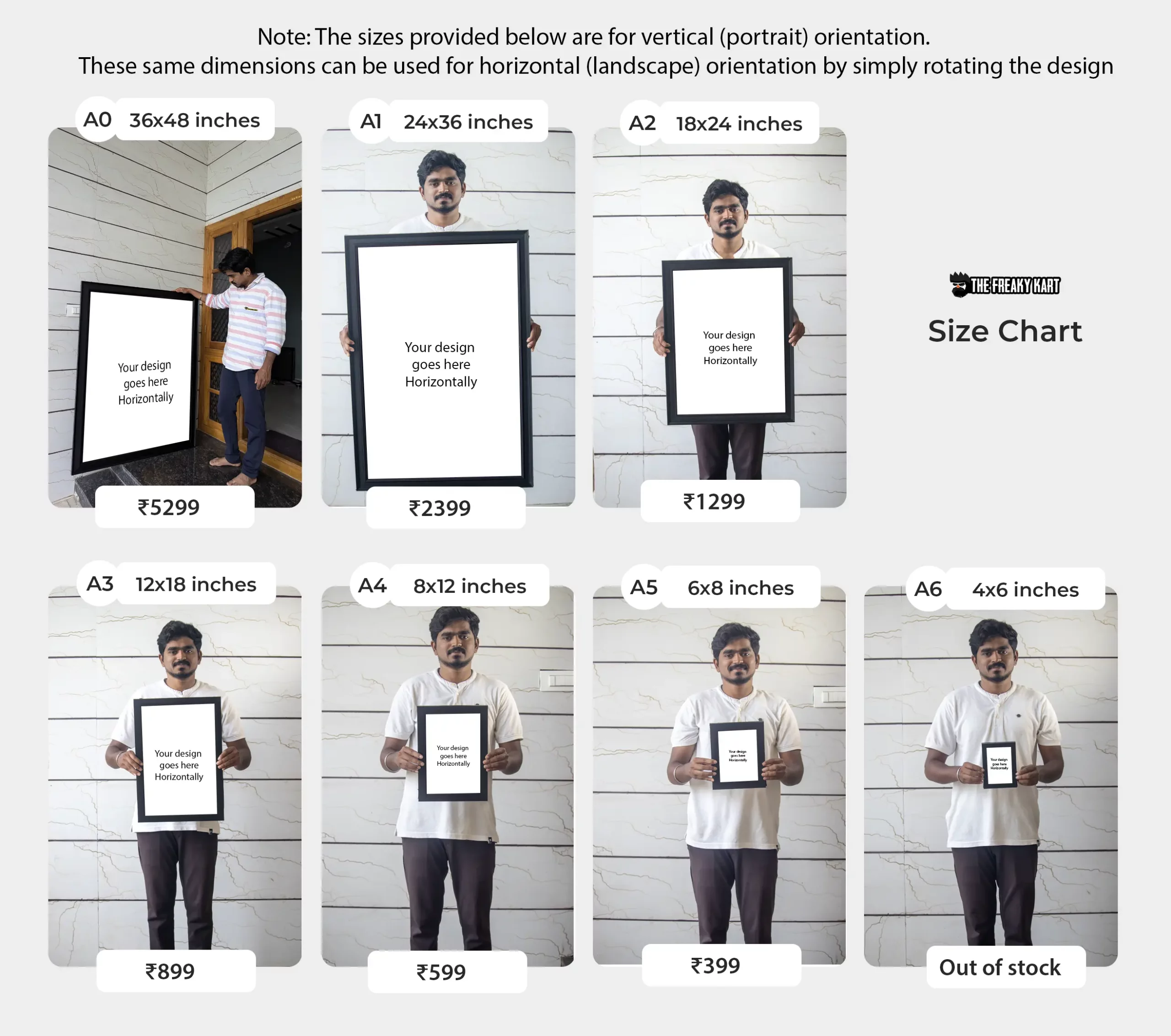 From compact A5 to large A0, choose the perfect frame size to match your space. Whether it’s a desk display or a wall highlight, we’ve got you covered.
